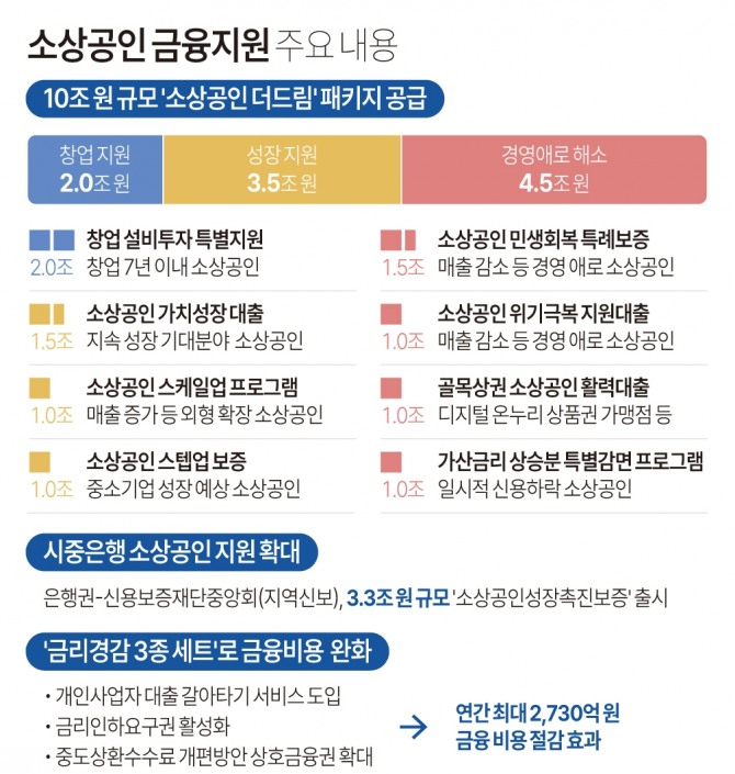 정부는 돈을 풀어 소상공인 살리기에 나서고 있다. 금융당국은 10조 원의 자금을 저금리로 소상공인들에게 특별 지원하기로 했다.