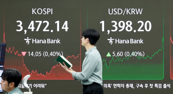 이미지 확대보기시장 충격에 따른 금리·환율 변동 폭이 매우 크다는 의미다. 최근 미국의 기준금리 인하로 한국과의 금리차가 줄었는데도 달러당 원화 환율은 1390원대로 고공 행진 중이다.