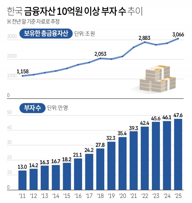 이미지 확대보기관련 조사를 시작한 2011년 이후 연평균 증가율은 9.7%다. 이들의 총 금융자산은 지난해 말 기준으로 3066조 원이다.