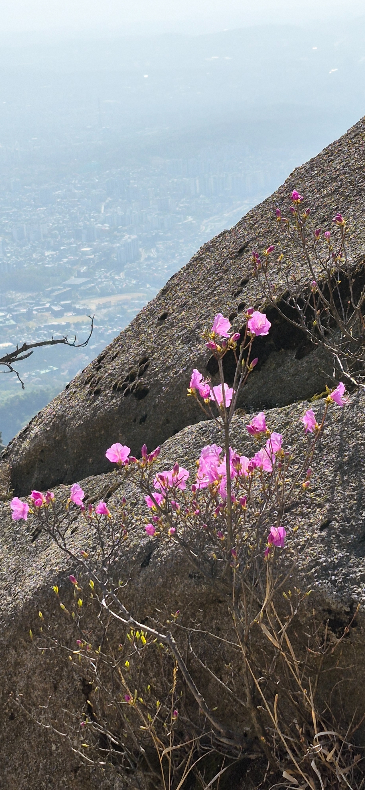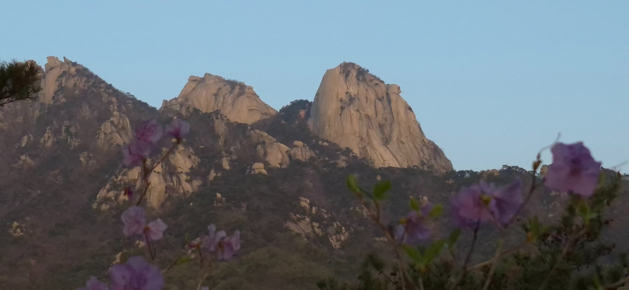 하지만 봄날 북한산의 주인공은 누가 뭐래도 진달래가 아닐까 싶다. 진달래는 동네 낮은 산에서부터 높은 산봉우리까지 산길 어디에서나 만날 수 있는 꽃이지만 북한산 ‘진달래능선’에서 만나는 꽃은 능선의 이름 때문일까 각별하게 다가온다. 끝이 다섯 갈래로 갈라진 꽃잎은 주름이 잡혀 있고, 위쪽에 찍힌 반점들은 보는 이의 시선을 사로잡는다. 암술과 수술은 여인의 속눈썹처럼 우아하다. 봄바람에 진달래 꽃밭이 흔들리면 마치 온 산이 춤을 추는 것 같다. 진달래능선에서 한나절 꽃에 취해 놀고 내려오니 내 안에도 꽃물이 든 듯 분홍으로 출렁인다.