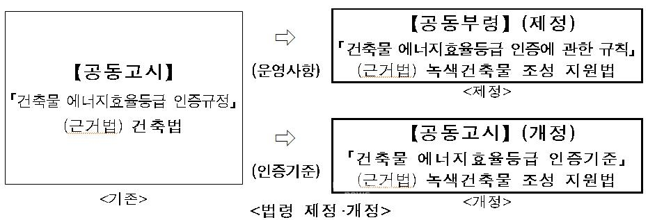 ‘녹색건축물 조성 지원법’에서 인증제도 운영 관련사항을 공동부령(규칙)으로 정하도록 하고 있어, 이번에 시행규칙을 새로 제정해 시행하는 것이다.