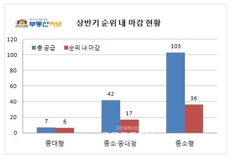 [글로벌이코노믹=김병화기자] 1~2인가구 증가와 베이비부머 은퇴수요증가로 ‘소형 아파트 전성시대’에 돌입한 가운데, 상반기 분양 아파트 중 중대형으로만 구성된 아파트들이 크게 선전한 것으로 나타나 눈길을 끌고 있다.부동산정보업체 ㈜부동산써브에 따르면, 올해 상반기에 분양한 전국 152곳 중 전용면적 85㎡ 초과 중대형으로만 구성된 단지는 총 7곳으로 이 중 6곳이 순위 내 마감에 성공해 순위 내 마감 비율 85.71%를 기록했다.