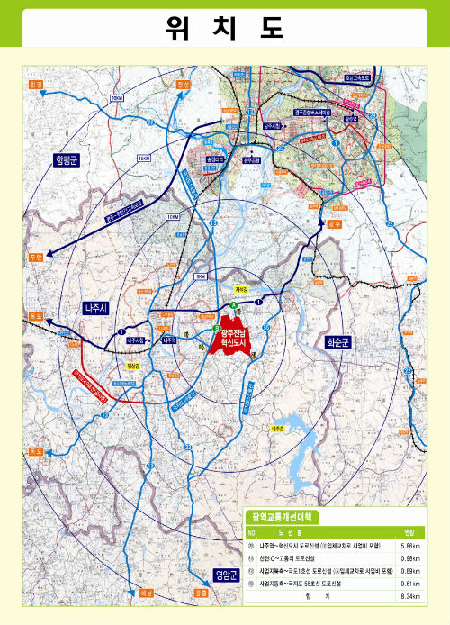 나주시내와 7km, 광주시내 20km 거리로 호남고속도로·KTX나주역·광주 송정역·광주공항·무안공항이 25분 내 도달 가능하다. 내년 3월에는 유치원과 초·중·고교 각 1개교가 개교할 예정이다. 녹지율 25%에 달하고 국내 셋째 규모의 중앙호수공원(약 52만㎡)이 조성된다.