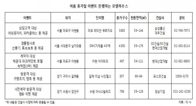 건설업계에 따르면 최근 분양현장 모델하우스에서는 여름휴가철을 앞두고 다양한 이벤트가 진행중이다.