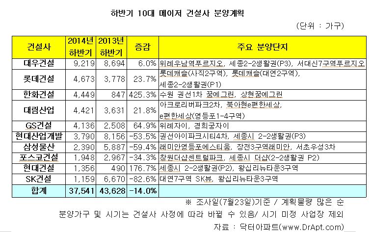 대우건설, 9219가구로 하반기 최대물량 공급…롯데건설, 한화건설이 2, 3위