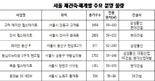 업계 관계자는 "최근 장기 지속됐던 미분양 물량을 털기 위해 건설사들이 분양가 할인, 발코니 무료 확장 등 다양한 혜택을 주고 있는 만큼 서울에서 저렴하게 집 마련을 할 수 있는 기회로 작용하고 있다"며 "특히 서울 재개발·재건축 아파트는 정부의 대책 발표로 희소성이 부각되고 있는 만큼 관심을 가져볼 만 하다"고 말했다.