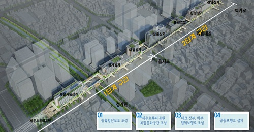 또 문화, 관광 등 활성화프로그램을 가동하고 입체보행 네트워크를 조성, 이 일대를 도심문화, 관광, 산업 거점화함으로써 관광객 유입과 지역경제 활성화를 유도한다는 계획이다.