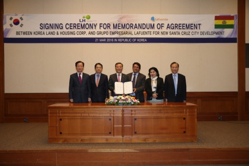 LH는 2014년 3월 볼리비아에서 중남미 4개국 공무원을 대상으로 ‘주택 및 도시개발 과정’ 현지연수를 시작으로 볼리비아 정부에 LH의 신도시 개발 노하우를 전달하는 등 다방면으로 협력, 2014년 7월 국내 기업이 산타크루즈 개발사업 기본구상을 수립한데 이어 동년 11월 도시기반시설 기본계획 수립 용역을 따낸바 있다. 이달 1일에는 선진-평화 컨소시엄이 115억원 규모의 '산타크루즈 뉴타운' 실시설계 용역을 수주하게 됐다.