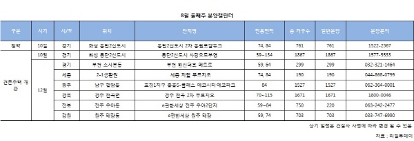 부동산전문 리서치업체 리얼투데이에 따르면, 8월 둘째 주 전국에서는 1곳 761가구가 분양을 앞두고 있다. 지난 주 분양물량인 1904가구보다는 약 60% 감소했다. 견본주택 개관 단지로는 총 7곳 6477가구가 예정이다. 당첨자 발표는 13곳, 계약은 14곳에서 이뤄진다.