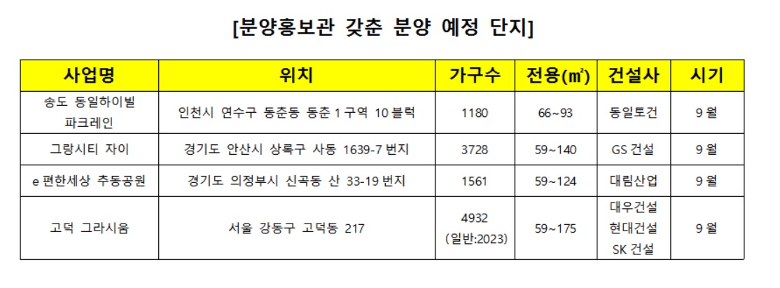 이남수 신한금융투자 부동산 팀장은 “분양성수기인 9월 견본주택 개관을 앞두고 분양을 준비중인 단지들이 분양홍보관을 열고 수요자몰이에 나서고 있다”며 “기존에는 견본주택 오픈 후에야 자세한 상담을 받을 수 있었지만 이와 같은 분양홍보관에서는 단지가 들어서는 입지 등 사전 확인이 미리 가능하므로 수요자들이 청약 접수시 더욱 꼼꼼하게 따져보고 결정할 수 있을 것”이라고 전했다.