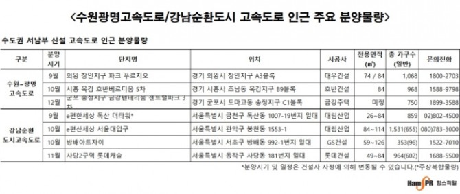 고속도로 개통 수혜지역을 중심으로 하반기 아파트 물량이 잇따른다.