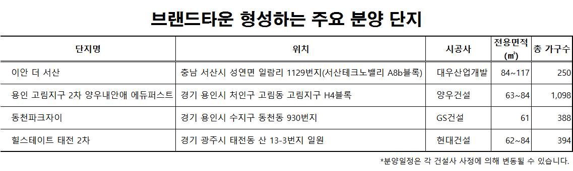 한국창업부동산정보원 권강수 이사는 “하나의 브랜드 아파트가 모여 대단지를 형성하는 브랜드타운은 조성이 완료되면 대규모 단지의 이점으로 인해 일대의 시세를 리딩하는 부촌으로 자리매김하는 경우를 어렵지 않게 볼 수 있다”며 “브랜드 타운은 그 특성상 일대의 생활 인프라나 커뮤니티 조성이 뛰어나기 때문에 단일 브랜드 단지 보다 더 큰 시너지 효과를 기대할 수 있다”고 설명했다.