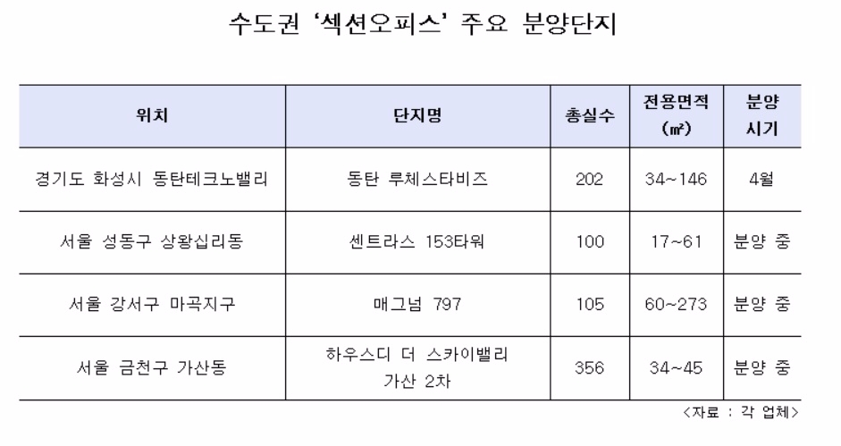이처럼 섹션오피스의 인기가 높아지며 신규 분양단지도 속속 선보이고 있다.