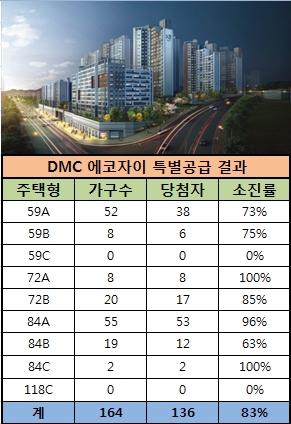 이미지 확대보기2일 금융결제원 아파트투유에 따르면 지난 1일 특별공급을 진행한 단지는 164가구 모집에 136명의 당첨자가 나와 평균 83%의 소진률을 나타냈다.