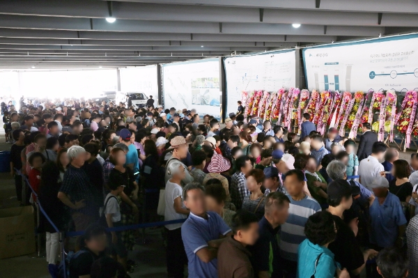 이미지 확대보기14일 건설업계에 따르면 지난주 대책 비규제지역에서 분양한 두산건설의 '두산 알프하임'과 시티건설의 '화성 남양 시티프라디움 3차' 견본주택에는 총 4만5000여 명의 인파가 몰렸다.