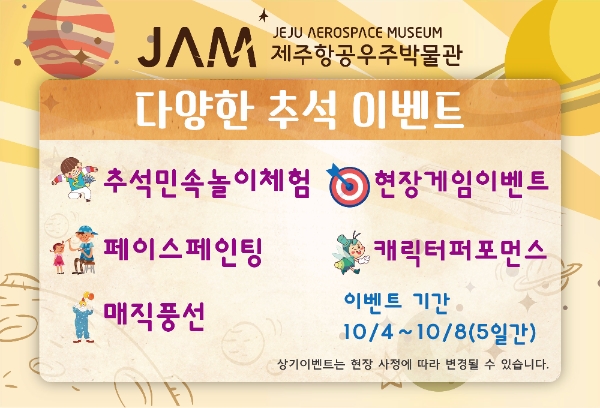 이미지 확대보기제주항공우주박물관(이하 JAM)이 추석 연휴 기간에 가족 이벤트를 연다.