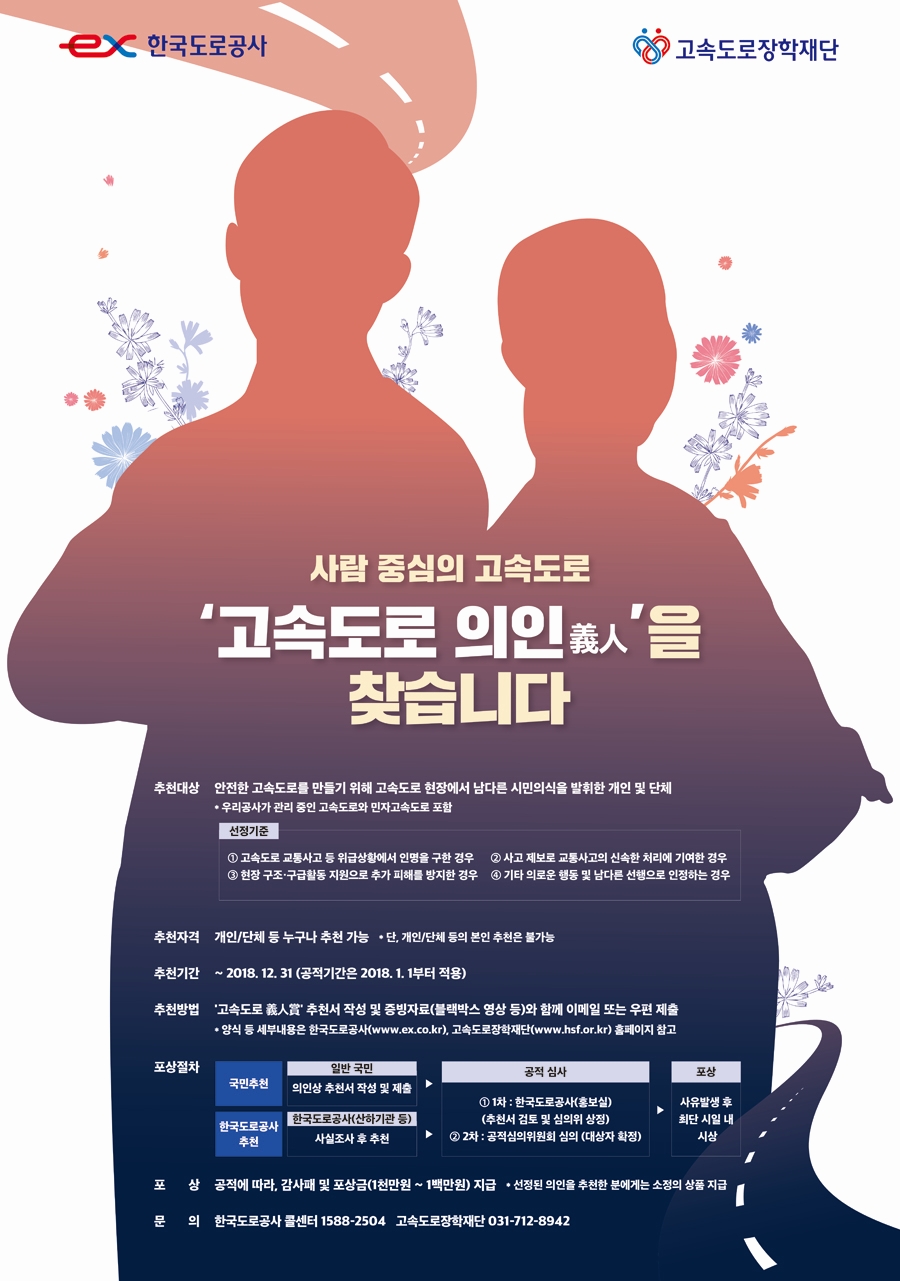 이미지 확대보기18일 한국도로공사와 고속도로 장학재단이 ‘고속도로 의인상(義人賞)’을 시행한다고 밝혔다.