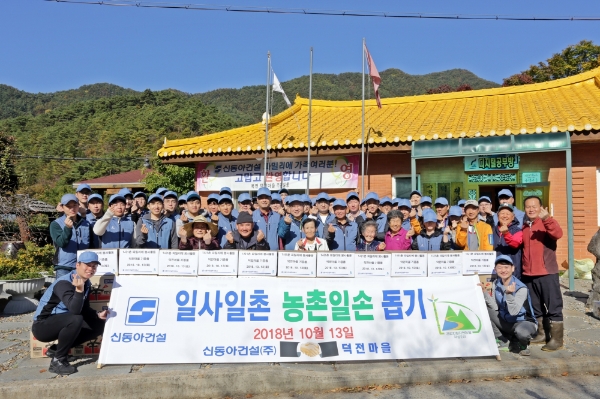 신동아건설은 지난 2007년 7월 덕전마을과 일사일촌 자매결연을 맺은 뒤 매년 두 차례 농촌 일손돕기 봉사활동, 마을회관 비품 지원, 농산물 직거래 장터 개최 등 교류를 이어가고 있다.