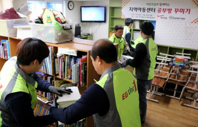 '지역아동센터 공부방 꾸미기 지원사업'은 라인건설이 지역아동센터의 쾌적한 교육환경 조성을 하기 위해 진행하는 사회공헌활동의 일환이다. 동양건설산업은 올해 창사 50주년을 기념해 이번 후원에 참여했다.