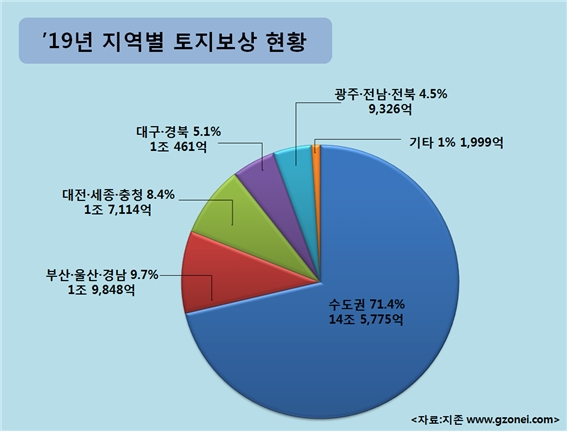 한편 올해 16조 원 규모의 토지보상금이 풀리면서 토지가격이 크게 오른 것으로 나타났다.