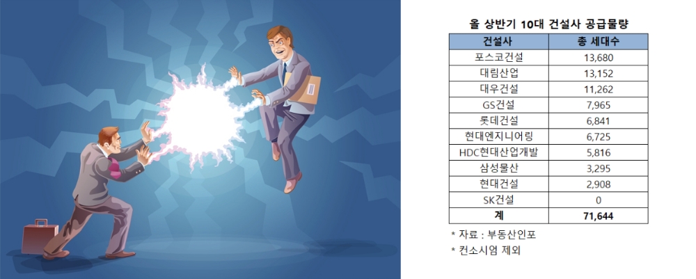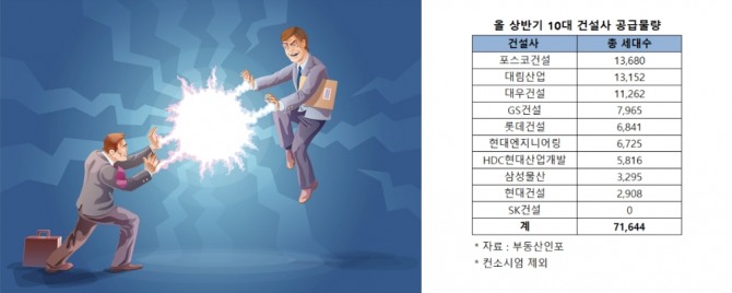 다음으로는 11개 단지, 1만 3152가구를 선보이는 대립산업과 이와 비슷한 13개 단지 1만 1262가구 공급에 나서는 대우건설이 뒤따른다.