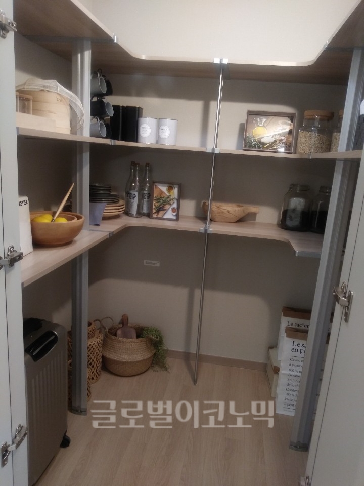 이미지 확대보기60대 부부가 살 집으로 방문한 이모씨는 "화장실이 크고 샤워룸이 따로 칸막이로 설치돼 좋다. 세탁기실에 건조기 설치할 공간이 따로 없어서 그 부분이 신경쓰이고 냉장고 수납 위에 공간이 약간 떠서 그 부분이 아쉽다"고 말했다.