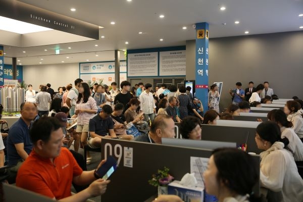 이미지 확대보기9일 아파트투유에 따르면, 신천센트럴자이는 8일 1순위 청약에서 365가구(특별공급 제외) 모집에 1만2159명이 몰려 평균 33.3대 1의 청약경쟁률을 기록했다.