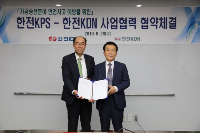 이미지 확대보기한국전력의 발전설비 정비 자회사 한전KPS가 같은 계열인 전력시설관리업체 한전KDN과 송전선로 정비에 따른 안전사고 예방을 위한 협업체제를 구축키로 했다.