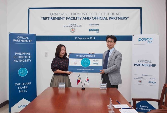 이미지 확대보기포스코건설은 지난달 25일 필리핀 관광부 은퇴청과 ‘더샵 클락힐즈’ 파트너 시설물 지정 협약식을 가졌다고 1일 밝혔다.