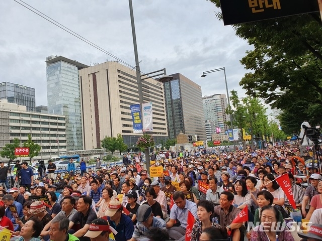 미래도시시민연대가 지난 9월 서울 종로구 세종문화회관 옆 소공원에서 ‘분양가상한제 소급적용 저지’ 시위를 벌이고 있다. 사진=뉴시스