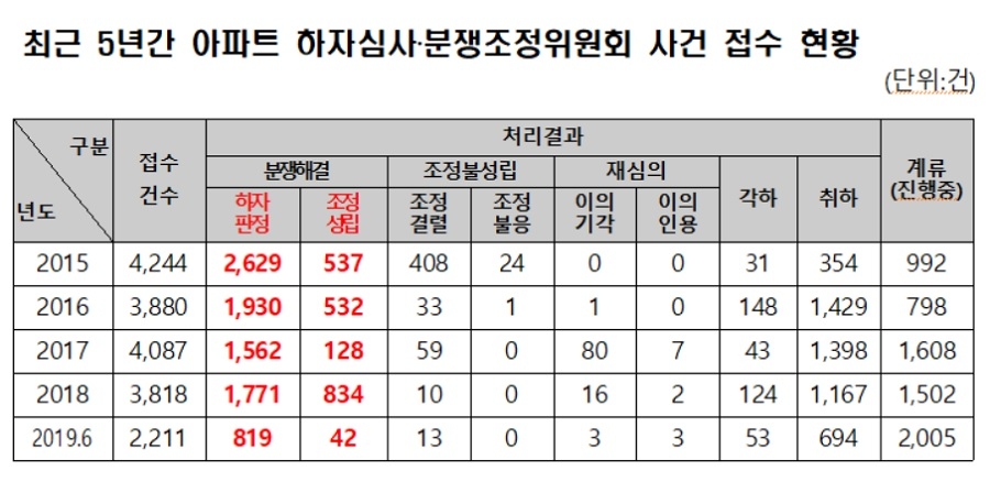 그러나 실제로 하자 판정을 받은 건수는 절반에 약간 못 미치는 8711건(47.8%)이었고, 조정이 성립된 건수도 2073건(11.4%)이었다.