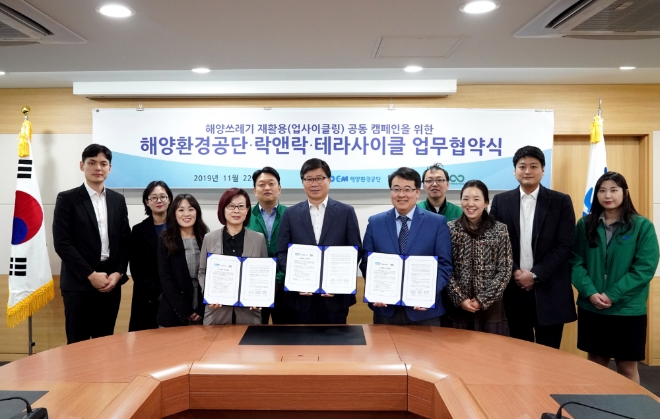 이날 체결식에는 해양환경공단 정상윤 해양보전본부장, 락앤락 강민숙 상무, 테라사이클 에릭 카와바타 아태지역총괄 등 관계자 10여명이 참석했다.