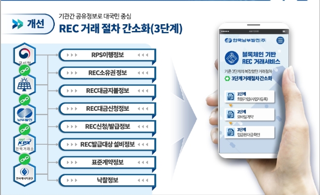 이에 남부발전은 전력거래소, 한국에너지공단과 협력해 블록체인 기반 REC 거래 시스템을 구축, REC 거래 절차를 3단계로 축소했다.
