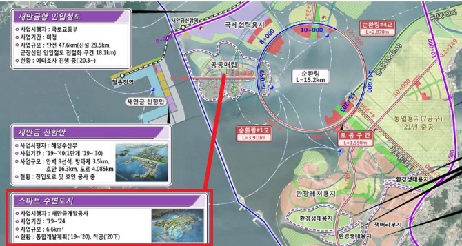 새만금 스마트 수변도시는 오는 2022년 12월 매립공사 완료를 거쳐 2024년 12월 조성공사를 완료한다는 목표이다.