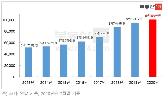이 가운데 가구당 20억 원을 돌파한 강남구와 조만간 20억 원 돌파를 앞두고 있는 서초구는 최근 2~3년 사이 재건축을 통해 새 아파트 단지로 속속 탈바꿈하면서 서울 전체의 시세를 견인하고 있다.