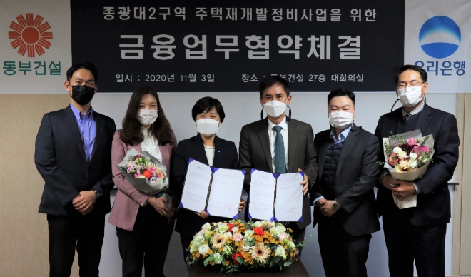 이미지 확대보기동부건설은 지난 3일 동부건설 사옥에서 우리은행과 금융업무협약을 체결하고 전주 종광대2구역 주택재개발정비사업에 수반되는 모든 재원을 확보했다고 밝혔다.