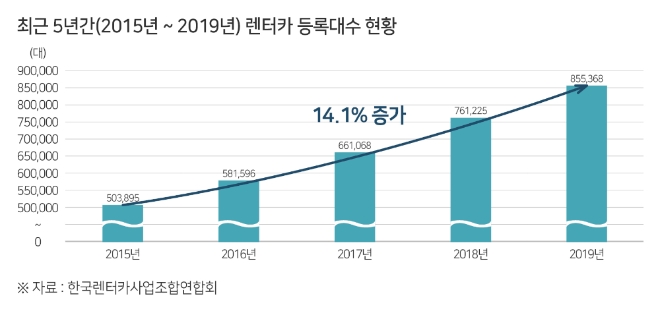 교통안전공단 분석결과에 따르면, 최근 5년간 렌터카 등록대수는 연평균 14.1%씩 꾸준히 증가했음에도, 렌터카로 인한 교통사고 사망자 수는 2015년 119명에서 2019년 82명으로 연평균 8.9%씩 감소했다.