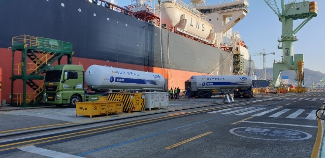 한국엘엔지벙커링은 설립 직후 삼성중공업과 'LNG선 시운전용 LNG 공급계약'을 체결하고, 지난 10일 거제조선소에서 건조된 10만t급 탱커선에 LNG 탱크로리를 이용해 TTS(Truck to Ship) 방식으로 LNG 약 220t(탱크로리 15대 분량)을 성공적으로 공급했다.