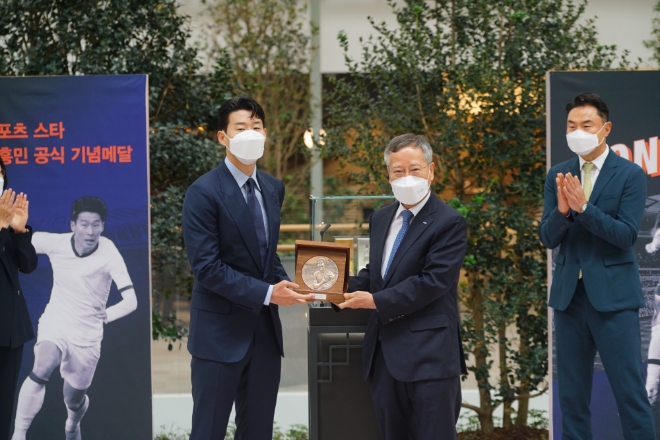 손흥민 선수는 "더 열심히 하고 훌륭한 선수가 되도록 격려해 주는 것이라 믿고 메달을 만들어 주신 의미를 잘 새기겠다"고 말했다.