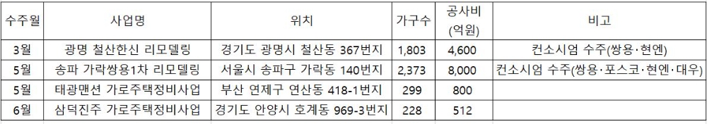 리모델링가로주택 등 올해 도시정비사업 4건 수주, 절반이 대형사업장...지난해 1건 거뜬히 돌파