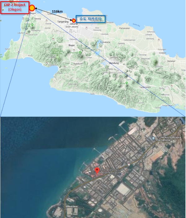해당 석유화학단지(CAP2)는 인도네시아 수도 자카르타에서 서쪽으로 약 116km 떨어진 찔레곤 지역에 위치하며, 나프타 크래커, 부타디엔, 폴리에틸렌, 폴리프로필렌, 벤젠 등이 생산될 예정이다.