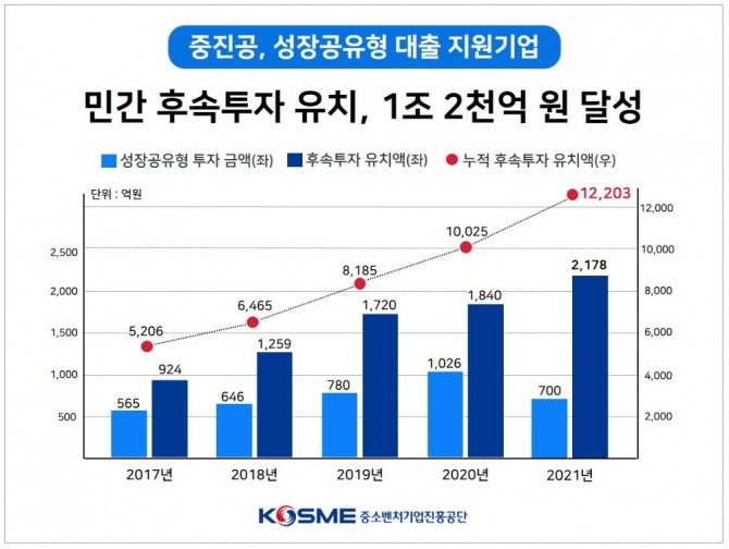 신종 코로나바이러스 감염증(코로나19) 장기화에 따른 대면 방식 투자유치 지원이 어려워지면서, 중진공은 후속 투자유치 지원을 온라인 플랫폼 중심 비대면 방식으로 전환했다. 이를 통해 총 2178억 원의 후속투자 유치를 이끌어 냈다. 이는 지난해 1840억 원과 비교해 18% 증가한 수치다.
