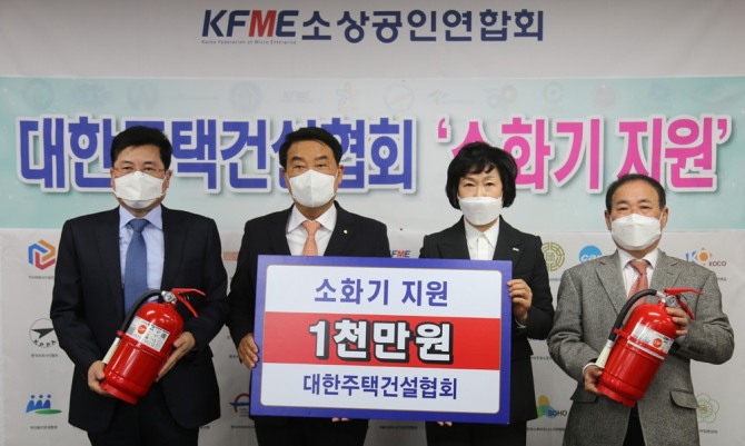 이 가운데 협회 중앙회는 지난 18일 소상공인연합회 대회의실에서 소화기 전달식을 통해 1000만원 상당의 소화기를 전달했다. 소상공인연합회에서는 이날 기증받은 소화기를 전국의 회원단체 소상공인 등에 전달할 계획이다.
