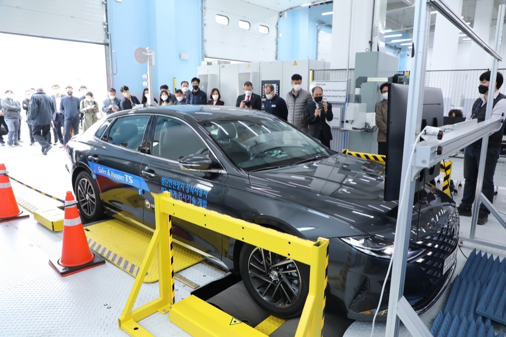 이미지 확대보기교통안전공단은 14일 경북 김천혁신도시 첨단자동차검사연구센터에서 국토교통부·국토교통과학기술진흥원·독일 검사장비 제조사(DUrr, dSPACE) 및 검사기관(KUS)·현대자동차·벤츠코리아·한국자동차연구원·지능형자동차부품진흥원과 함께 미래자동차 검사 테스트베드 시연회를 진행했다.