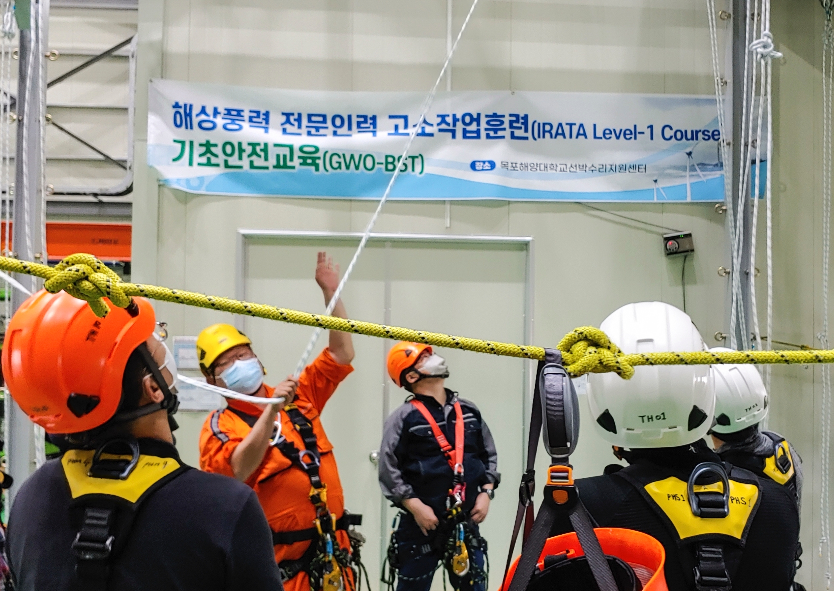 이미지 확대보기18일 중부발전은 지난 11일부터 5일간 목포해양대 해상풍력 교육센터에서 해상풍력 O&M 전문가 육성을 위한 국제 인증 고소작업 훈련(IRATA Lv.1)과 세계풍력기구 기초 안전교육(GWO-BST)을 사내 직원을 대상으로 시행했다고 밝혔다.