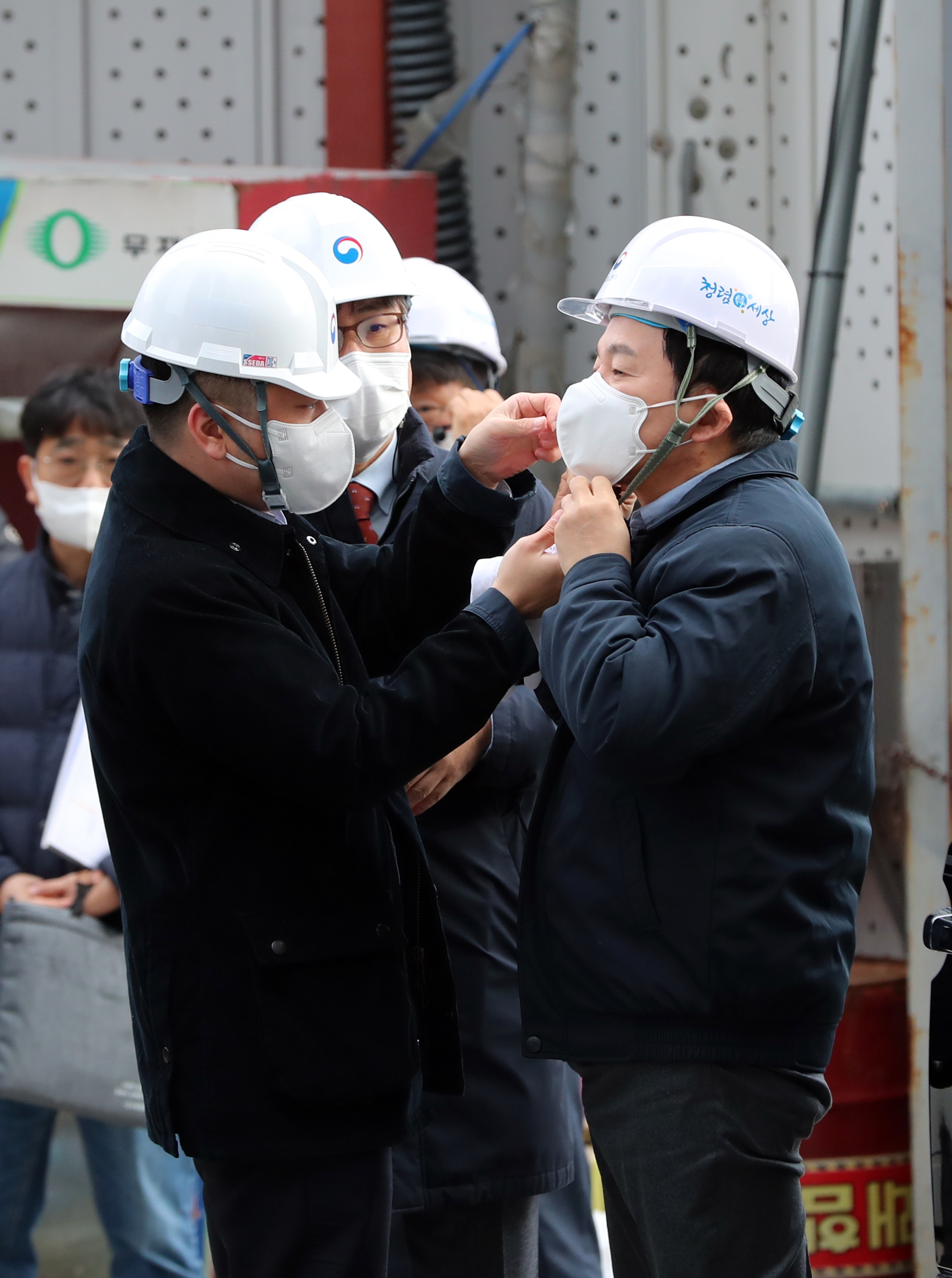 이미지 확대보기5일 원희룡 국토부 장관은 부산광역시에 위치한 공동주택 공사현장을 방문해 화물연대의 집단운송거부 및 이에 동조한 건설노조의 공사중단 움직임에 따른 건설공사 피해 현황을 점검했다.