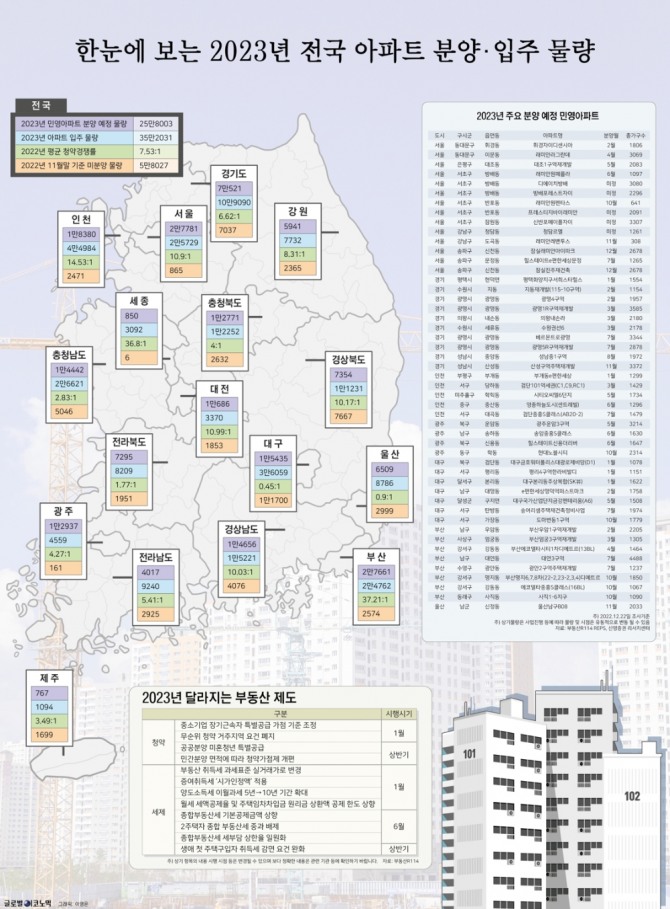올해 입주 물량은 35만2031가구(임대 포함 총가구)로 집계됐다. 시도별로 살펴보면 △경기(10만9090가구) △인천(4만4984가구) △대구(3만6059가구) △충남(2만6621가구) △서울(2만5729가구) 순이다. 수도권 물량이 전체 약 51%를 차지한다.