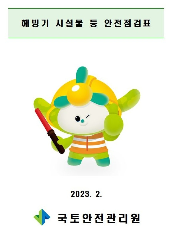 이미지 확대보기국토안전관리원은 13일 계절적 취약 시기인 해빙기 안전사고 예방을 위해 ‘해빙기 건설공사 및 시설물 안전점검표’를 배포했다고 밝혔다.