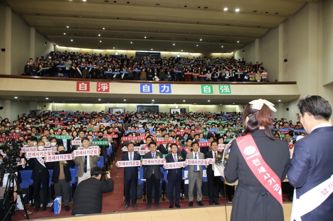 이어 "책임있는 중개업무를 통한 전세사기 예방과 근절에 앞장서자는 11만 협회 회원의 굳은 결의를 다지기 위해 오늘 전국에서 1500명의 회원들이 한자리에 모여 그 의지를 다짐하고자 한다"고 밝혔다.