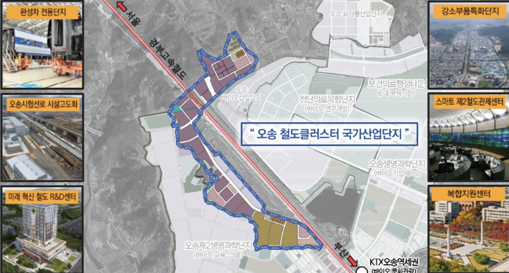 국내에 철도산업 클러스터가 조성되는 건 청주 오송이 처음이다. 2029년까지 흥덕구 오송읍 일원에 99만3000㎡ 규모의 철도 클러스터가 조성된다.